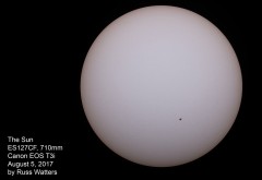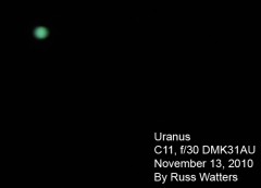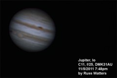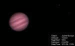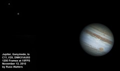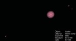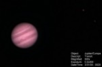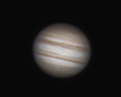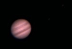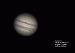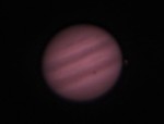 | This and the ones to the right are Jupiter and the 3/30 Eurpoa transit. This one is a composite, also showing the moons Ganymede, Callisto, and Io. | These next three are in sequence. In this photo, Callisto and Io are just visible to the right of Jupiter and Europa is to the lower-left. | Europa is just visible, right next to its shadow, just emerging on the lower-left side of the planet. | |