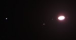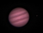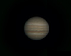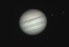 | This is Jupiter, and if you look closely, Europa and Io to the right, taken on 2/1/05. | This is Jupiter on 2/19/05. | This is Jupiter, and again if you look closely, Europa and Io to the right, taken on 3/5/05. | This is a composite of Jupiter, Europa, Io, Ganymede, and Callisto, taken on 2/19/05. Short exposure and higher magnification for the planet, longer exposure and lower mag for the moons. |