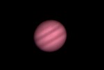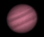 | This and the next photo are Europa passing in front of Jupiter on 3/5/05. Europa's shadow is visible in the middle of the lower dark band. | 3d scale is tough on these pictures - Eurpoa looks like it is close to Jupiter, but actually it is around a foot above your computer sceen. | This is an animation of a Europa transit on 3/30/05 (click to play). It's about six hours worth of photos. | |