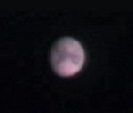 | 9/27/05 | This is an animation of the photos I took on 9/27. Mars started low to the horizon, so it was pretty blurry. This animation covers about 6 hours. | 11/2/05. This photo was taken with a webcam - I wanted to compare the quality. | 11/2/05 with my DSI. |